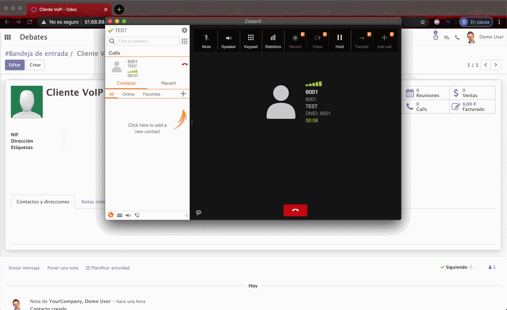 Hacemos click en la notificación para abrir nuestro softphone.